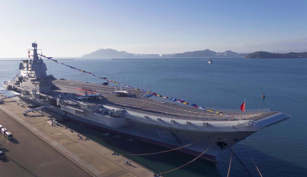 12月17日,我国第一艘国产航空母舰山东舰在海南三亚某军港交付海军。经中央军委批准,我国第一艘国产航母命名为“中国人民解放军海军山东舰”,舷号为“17”。新华社记者 李刚 摄