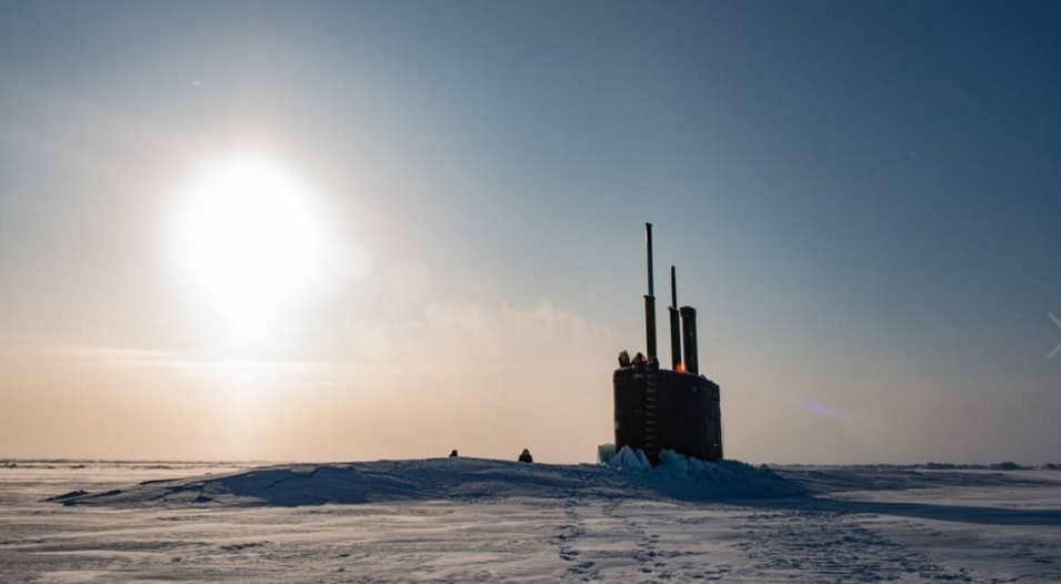 美国在北极“秀肌肉”核潜艇顶破北极冰层浮出冰面