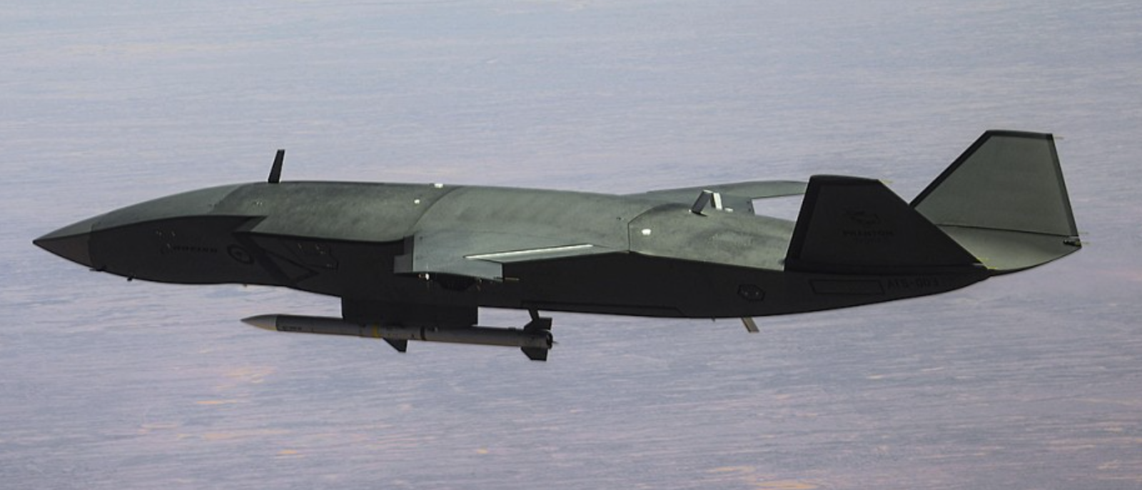 12月上旬,澳大利亚政府对外宣布,波音澳大利亚公司研制的MQ-28A“幽灵蝙蝠”无人机已完成首次实弹发射测试。该测试于12月8日在澳大利亚南部的伍默拉试验场进行。参与测试的MQ-28A“幽灵蝙蝠”无人机作为“忠诚僚机”,与澳大利亚空军E-7A“楔尾”预警机、F/A-18F“超级大黄蜂”战斗机协同执行任务。测试中,MQ-28A“幽灵蝙蝠”无人机发射1枚AIM-120中程空空导弹,成功击中澳大利亚本土制造的“凤凰”喷气式靶机。